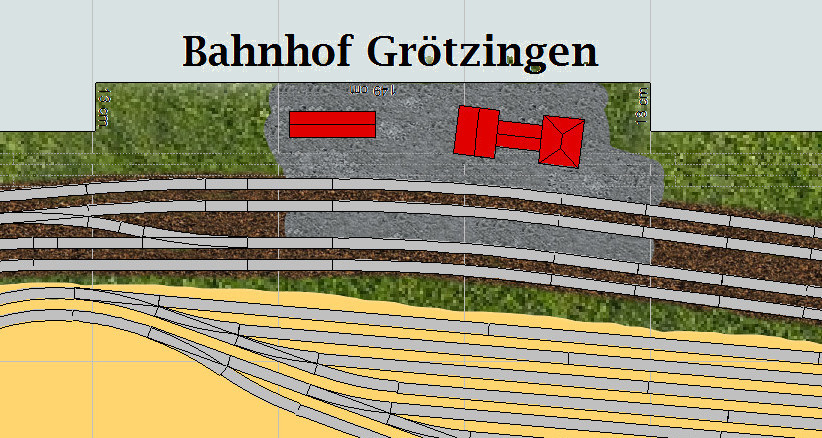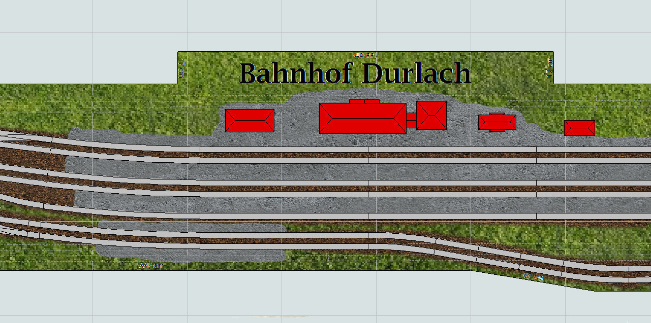Der nachfolgende Entwurf beinhaltet weitestgehend die gleichen Motive, die die alte Clubanlage enthielt, also die Bahnhöfe Grötzingen und Durlach, sowie die Bahnstrecken nach Heidelberg, Pforzheim und Heilbronn.