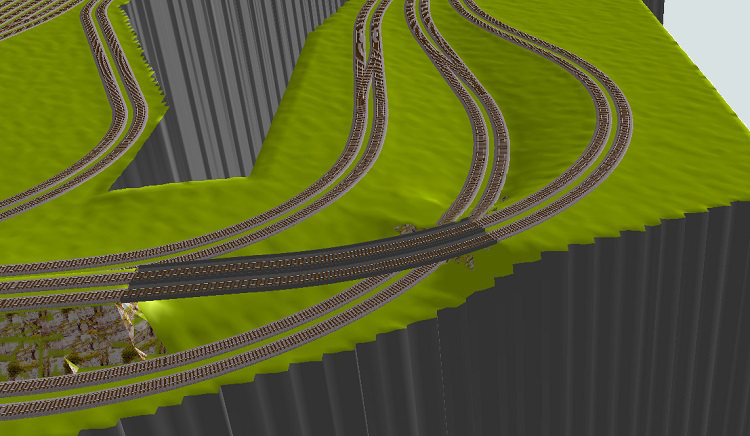| mit Hilfe der Straßenbrücke kann der Eisenbahntunnel versteckt werden, den es an dieser Stelle in Realität natürlich nicht gibt |